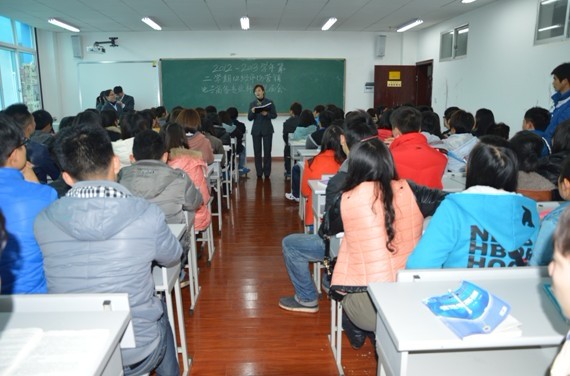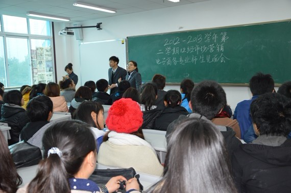 2013年2月25日,商贸系物流管理、电子商务、商务英语、物业管理、社区管理与服务、法律事务、市场营销7个专业在B栋8楼多媒体教室召开“2012-2013学年度第二学期商贸系师生见面会”。商贸系党总支书记刘德刚、系副主任赵霖、办公室主任张进、团总支副书记黄丽娟及商贸系全体教师、辅导员参加了此次见面会。