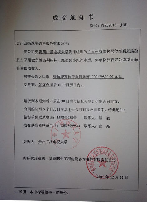 贵州广播电视大学车辆采购项目中标公示