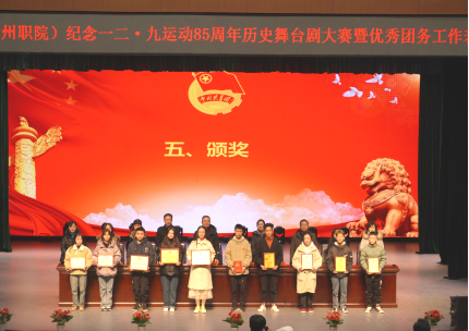 表彰大会结束后,开展纪念一二•九运动85周年历史舞台剧大赛,各学院党总支书记受邀担任舞台剧大赛评委,本次比赛用舞台剧的方式演绎历史故事,激发青年学子的爱国主义情怀,勉励当代青年树爱国之心、立报国之志。