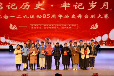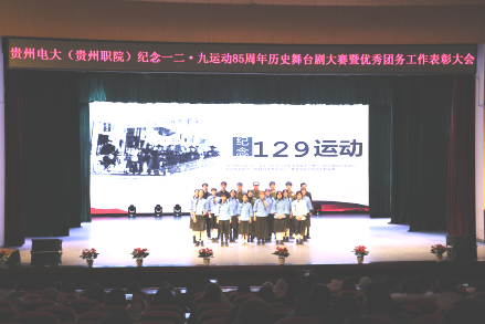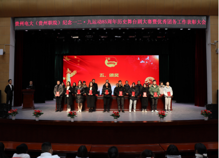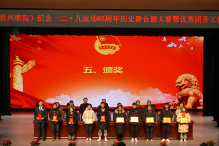 2020年12月15日下午,贵州广播电视大学(贵州职业技术学院)纪念一二•九运动85周年历史舞台剧大赛暨优秀团务工作表彰大会在大礼堂举行。学校党委副书记龚辉,学校党委委员、组织部部长张仁俊,各学院党总支书记、全校团干部以及师生代表500人参加。活动由校团委副书记范少华主持。