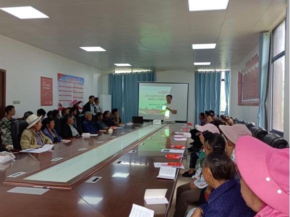 在陡箐镇土发村村委会议室,校团委副书记范少华带领土发村群众学习习近平总书记在庆祝中国共产党成立100周年大会上的重要讲话精神,并以打赢脱贫攻坚战伟大胜利的生动事实,引导群众体悟中国特色社会主义制度优势,坚定道路自信制度自信。随后针对群众关切的教育问题特别是高考及分类招生考试等升入大学等问题,为群众作了详细讲解和回答。