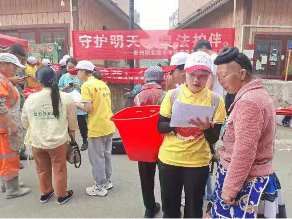 连日来,贵州开放大学(贵州职业技术学院)2021年暑期“三下乡”校直属健康人生禁毒防艾实践队、“守护明天,良法护伴”青春普法实践队进“学校、进社区,进养老服务中心,走村串寨,入户走访,宣讲习近平总书记在庆祝中国共产党成立100周年大会上的重要讲话精神,开展青春普法、禁毒防艾宣讲等系列“我为群众办实事活动”。