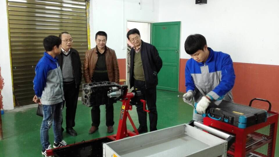 座谈会结束后,徐伟副校长在杨瑞刚副县长的陪同下对从江职中进行了实地调研,参观了服装设计、汽车维修、机械加工等专业的实训课堂。