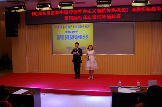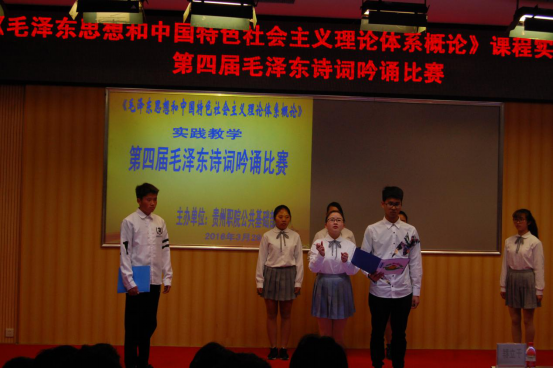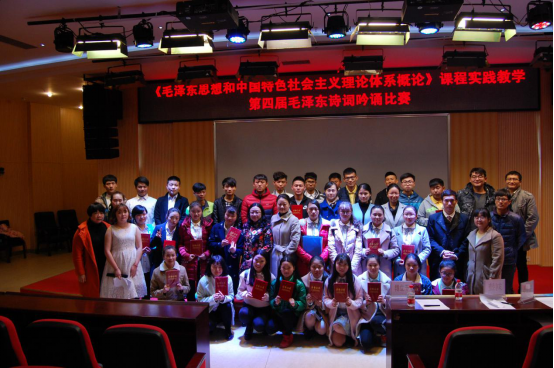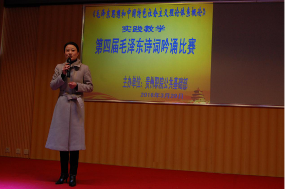 我院思政课老师们一直积极探索高职思政课程教学的多样化模式,本次比赛已是第四届,此种诗词吟诵形式旨在将相对单调的理论传递通过多样化的形式,潜移默化地感染学生,将理论和思想悄无声息地植根学生的灵魂深处,达到润物细无声。作为集诗人与政治家于一身的毛泽东,他的诗词给人最大的印象就是意境高远、气势磅礴的风格。通过参加毛泽东诗词吟诵,可以激发高职学生的学习热情,减少自卑心理,提升自信心和自信力。读毛泽东的诗词,同学们在无形中觉得自己的视野开阔了,心胸宽广了,认识提升了,感情升华了。在此基础上,同学们对《毛泽东思想和中国特色社会主义理论体系概论》课程相关内容的理解和把握更深刻了。