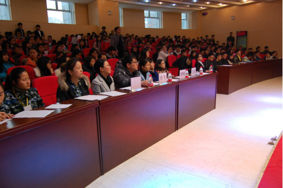 初春天气,咋暖还寒,但同学们热情高涨,早早就到会场,比赛1:30分准时开始。参加此次比赛的均为本学期开设《毛泽东思想和中国特色社会主义理论概论》课程的2015级同学,共报送《沁园春.雪》、《念奴娇.昆仑》、《忆秦娥.娄山关》等26个节目,涉及毛泽东不同时期的诗词,从各个层面反映了毛泽东诗词产生的历史背景,为同学们准确地把握毛泽东诗词的內涵,真正把握毛泽东诗词的整体诗意词意提供了良好的平台。同学们对这种教学形式积极性相当高,所报出的这些节目是老师们在各班经过初选后,精挑细选推出来的。