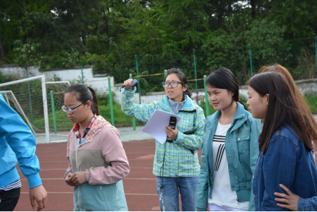 针对裁判员各个岗位的不同职责进行的实战演练。首先要对学生裁判员进行分组,然后由体育教研室老师带领学生裁判到各项目场地分组实习,杨筱竹老师负责计时组、黄光彬老师负责器材组,陈尉老师负责终点组和检查组,蒋佰宏老师负责终点记录组,刘琦老师负责发令组,潘廷优老师负责检录组和田赛裁判组,敖军老师任总裁判长。