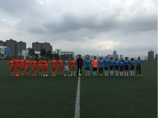 赛前,队员们个个激情满怀,积极做好热身准备。随着裁判的一声哨响,两支球队在绿茵场上展开了激烈的角逐,球员们尽情的展示着团队的热情与默契,挥洒着自己的汗水。半场哨响,我校女队以2:1的比分领先上半场。
