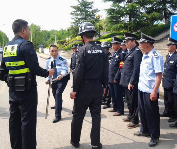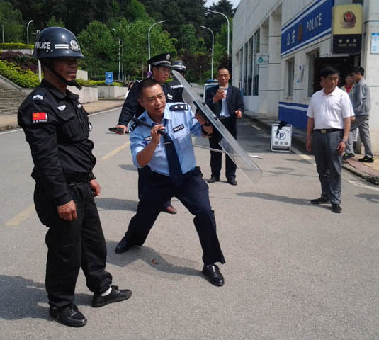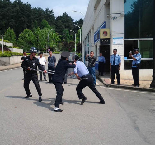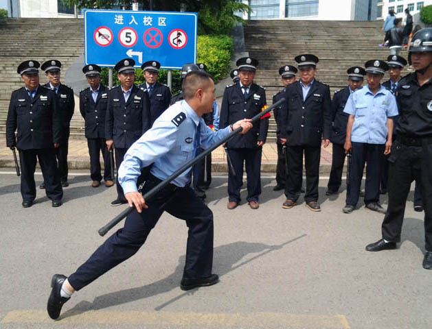 为认真贯彻落实省综治办、省公安厅、省教育厅和学校2016年校园及周边治安综合治理工作视频会议、工作计划、方案等系列文件、会议精神,切实有效的预防校园反恐防暴事件的发生,提高学校应急处置、反恐防暴处突工作,增加学校安保队伍的应急反应能力和团结协作精神,切实增强学校安全保卫工作,确保全校师生的生命财产安全,2016年5月4日上午,由保卫处牵头,邀请贵阳市观山湖区金源派出所王文廷、张雄伟、彭忠俊警官等一行3人,物业公司参与,组织我校安保队伍开展了“警·校”安保培训暨反恐防暴处突培训、演练。
