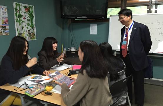 (徐伟副校长参观韩国大日外国语高中,在汉语课上与学生互动)