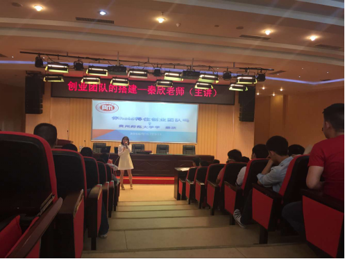 我校与贵州师范大学国家大学科技园联合举办以“创我青春,祝梦飞翔”为主题的创业大赛即将决赛。借助创业大赛决赛为契机,为了普及我校在校学生创业知识,提高创业技能,我中心于2016年5月5日下午,邀请贵州师范大学物理与电子科学学院团委书记,全国高等学校学生信息咨询与就业指导中心创业指导师——秦欣老师,在我校图书馆学书报告厅举行了题为----创业团队搭建的创业教育专题讲座。参与本次讲座的有创业大赛参赛者、参赛指导教师以及各学院学生代表,共计240人。