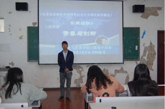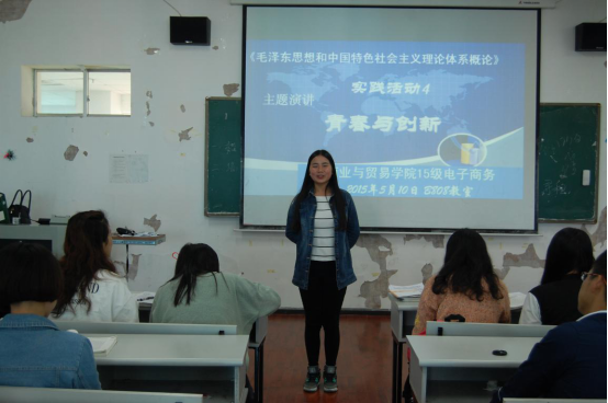 《毛泽东思想和中国特色社会主义理论体系概论》是高职学生的一门必修课,也是思政课中理论知识多、难点、热点多,老师“难教”、学生“难学”的一门课程。在学期开始,基础部思政教研室通过集体备课,大家结合教材的情况和高职学生的特点,决定采取多样化的校内实践教学形式,充分调动高职学生学习思政课的积极性和主动性,大家商定以“青春与创新”为主题在15级学生中进行演讲赛。经过班级选拔,在全校范围进行决赛。
