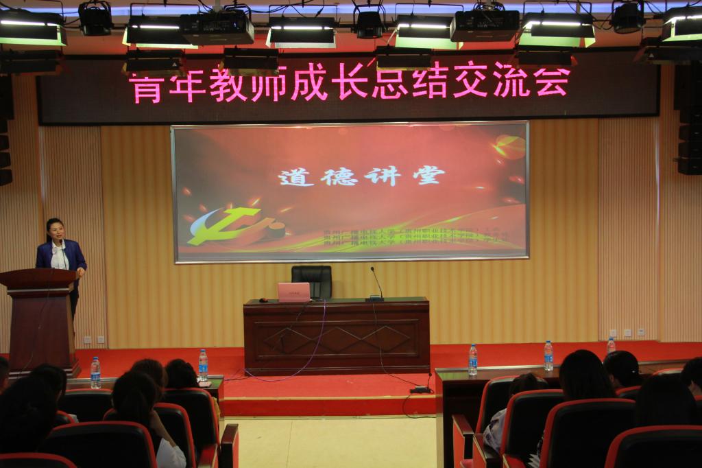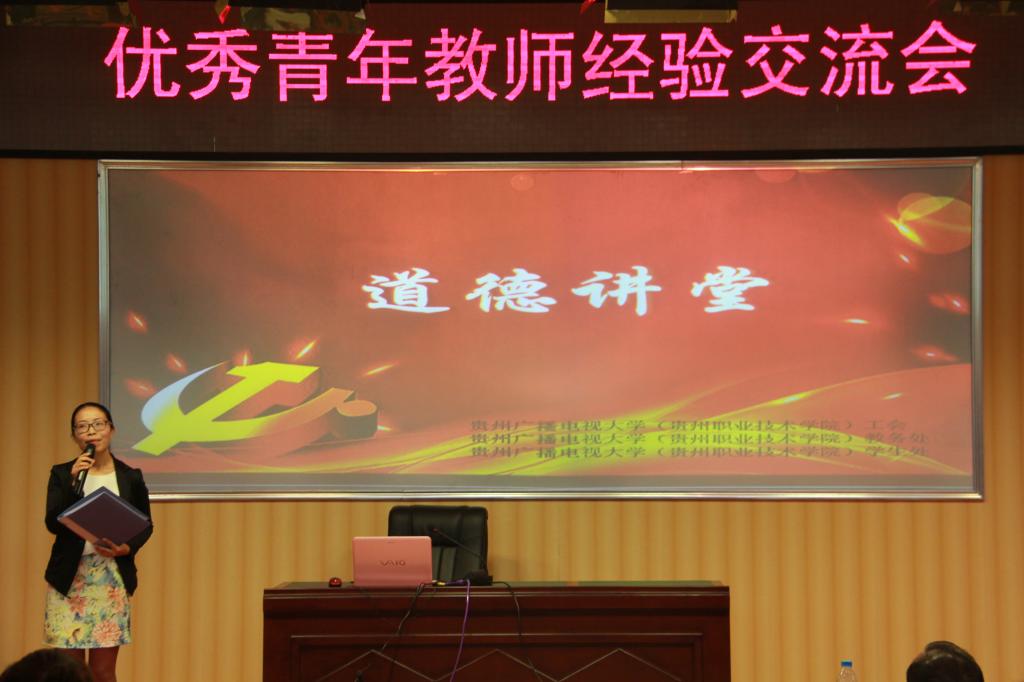 在交流会中,教务处处长、曾获“最美教师”称号的赵霖老师与大家分享了优秀教师成长经验;获2015年贵州省五一巾帼标兵称号的信息工程学院张俞老师给大家做了“匠心筑梦”的主题汇报;商业与贸易学院郭知涛老师介绍了他2014年在从江县往洞乡扶贫支教的经历;商业与贸易学院黄丽娟老师,从一名普通辅导员做起,勤勤恳恳、任劳任怨工作在第一线,在平凡的岗位上取得了不平凡的成绩,到目前为止获得全国、省级奖项达17项之多,她将自己的成长经历与大家进行了分享,并在最后以配乐朗诵《青春》与大家共勉。