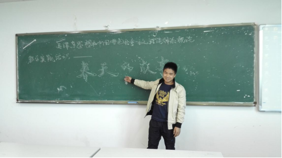 活动前一个星期,肖老师与班上学生进行了交流,指导他们以改革开放作为活动的主线并要求他们进行精心准备。活动开始后,同学们根据自己的编排进行了“春天的故事”教学实践活动的表演和讲述。首先,谭翠、张广、李小玉、梁秀珍四名同学声情并茂地朗读了《春天的故事》,这首由蒋开儒和叶旭全作词,王佑贵作曲,董文华演唱的经典歌曲,描绘了1979年春天,邓小平在深圳勾画出一幅改革开放的蓝图……1992年,邓小平南巡,开拓了改革开放的新局面;接着杨家丽同学以“一位老人——伟人邓小平光辉的一生”为题讲述了邓小平的生平特别是领导中国人民进入改革开放和现代化建设新时期的历程;邹文涛同学以“一个春天(1979年)——南海边画了一个圈”为题讲述了改革开放的时间结点和地方起点;熊登发同学以“一次大会——十一届三中全会”为题介绍了这次建国以来党的历史上具有深远意义的重要会议;何情松同学以“一个农村——安徽凤阳小岗村”为题谈到了十八位农民在土地承包责任书上按下红手印拉开了改革开放序幕的故事;王宇雁同学以“一个画圈——深圳的巨变”为题讲述了改革开放30余年深圳从一个人口只有3万人的小县城发展到人口过千万的现代大都市的进程;商明月同学以“一个春天(1992年)——南海边写下诗篇”为题讲述了改革开放和现代化建设以“南方谈话”为标志,进入了新的历史发展阶段;曹灿灿同学以“一个学生——我的家乡贵州”为题结合自身的经历讲述贵州交通和生活的巨大变化;最后,韩庆松同学以“‘一个教师’——我眼中的活动”为题,站在教师的角度总结了活动的基本情况。