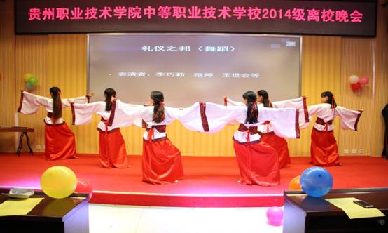 梦想起航,青春不散场。匆匆那年又到了毕业季。2016年7月1日晚19:00到20:30,贵州职业技术学院中职校为2014级学生举办了以“我们的青春不散场”为主题的离校欢送晚会,此次晚会在学校图书馆二楼报告厅隆重举行。中职校陈静淳校长、辅导员兼班主任赵曼老师等中职所有老师以及其他系部受邀教师代表等出席了晚会。陈静淳校长在致辞中向离校生传达了真切祝福和殷殷鼓励。