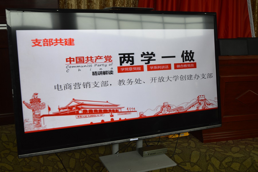 为加强支部共建工作,深入开展“两学一做”学习教育,引导党员坚定理想信念,增强看齐意识,真正做一个合格党员。2016年7月6日下午,贵州广播电视大学(贵州职业技术学院)商业与贸易学院电商营销党支部和教务处党支部开展了“两学一做”学习教育支部共建活动。校党委委员、副校长李勤同志,教务处处长赵霖同志,商业与贸易学院党总支书记刘德刚同志、副院长(主持工作)彭琳同志、副书记王永峰同志,副院长袁德臻同志,副处长杨家兴同志、副处长周显龙同志等均以普通党员身份,同其他党员同志共计40余名,参加了此次支部共建活动。本次“两学一做”支部共建活动启动仪式上开展了共上一门党课、共学一篇文章、共做一件实事等活动。