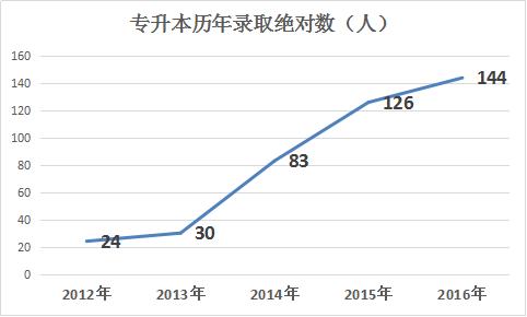 2016年我校毕业生专升本工作由招就中心统一组织,学生工作处、各学院积极配合,经过报名、初审、复审、公示、志愿填报、录取等实施环节,现已全面结束。今年我校共389名同学报名考试,最终录取144人,报名录取率37.02%。与去年同期相比,专升本录取数增加18人,同比增长14.5%。 本科录取院校包括贵州大学、贵州师范大学、贵州财经大学、贵州民族大学、贵州师范学院等16所院校,覆盖27个专业(方向),专业匹配率达93.05%。具体情况详见下表: