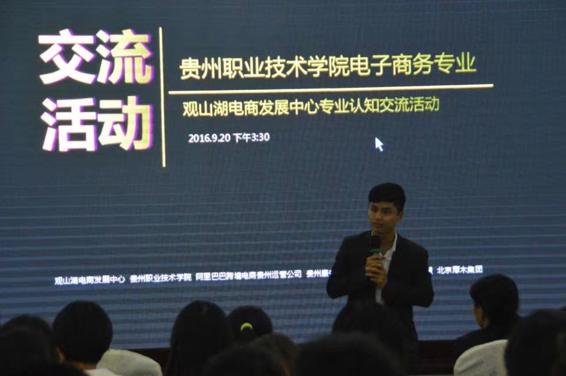 此次活动得到电商中心的大力支持和重视,在参观过程中专门安排了工作人员为同学们进行耐心细致的讲解,使同学们对电商发展中心有了初步的认识,随后组织同学们参加了一次别开生面的讲座。此次交流讲座由部分入驻该电商中心的企业人员参与,分别有阿里巴巴跨境电商贵州服务中心赵栖总经理、E药惠韩小胜副总经理、福云科技市场部龙昌礼经理以及北京厚木资本集团汤明军副总裁。