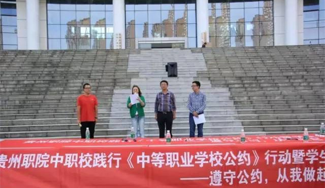 仪式在中职校校长陈静淳老师发表《践行< 公约>从我做起》的主题讲话中展开,陈老师在讲话中号召“中职的同学们要以《公约》为指引,做到知行合一,切实践行《公约》,争做符合党和国家要求的专业型人才。”