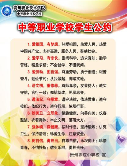 为全面落实党的十八大和十八届三中、四中、五中全会精神,深入贯彻习近平总书记系列重要讲话精神,积极培育和践行社会主义核心价值观,增强中等职业学校德育的针对性、实效性,教育引导学生自觉养成良好的思想品质和行为习惯。教育部于9月4日印发关于开展学习签署践行《中等职业学校学生公约》(以下简称《公约》)活动的通知,要求将公约作为中等职业学校新学期开学主题教育内容之一,深入学习宣传、组织共同签署、督促指导践行,教育引导学生自觉养成良好的思想品质和行为习惯。