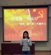 其余党员老师也围绕“讲道德、有品行”这一主题,紧密联系思想和实际,交流了学习体会。大家表示,要始终保持对党的绝对忠诚,深入学习贯彻习近平总书记系列重要讲话精神,不断增强“四个意识”,在思想上、政治上、行动上始终与以习近平同志为核心的党中央保持高度一致,在讲政治上“知行合一”,把“讲道德、有品行”作为一生的必修课,始终坚守共产党人的道德修养和精神家园,能够把自己所学奉献给学生,更会在道德和品行方面给学生以积极的影响。