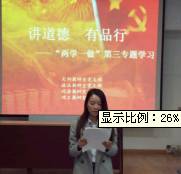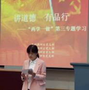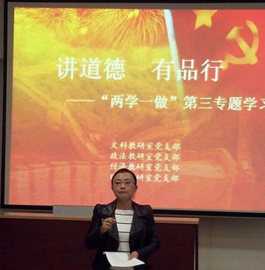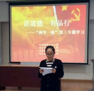 政法教研室党支部李黔豫老师结合自己在远程教育教学部的工作实际,认为“讲道德、有品行”就是要注重师德师风的培养,要树立为人师表的形象,要保持廉洁自律,要立足本职岗位,要加强业务学习;文科教研室党支部李相春老师从四个部分探讨了共产党员如何做到“”讲道德、有品行”:教师应真诚的接受学习,完善自己的道德品行;深刻反省,用于自我批评;用模范的事迹激励自己;转变教育观念,积极投身到教育实践中去,刻苦磨练自己;理工教研室党支部荣光老师提出要爱学习、重品行、做表率,重视培养自己高尚的道德和操守,品行主要依靠个人道德的修养和锤炼;经济教研室党支部的龚英老师从什么是讲道德有品行、讲道德有品行的意义和怎样做到讲道德有品行三个方面汇报了自己的学习体会。
