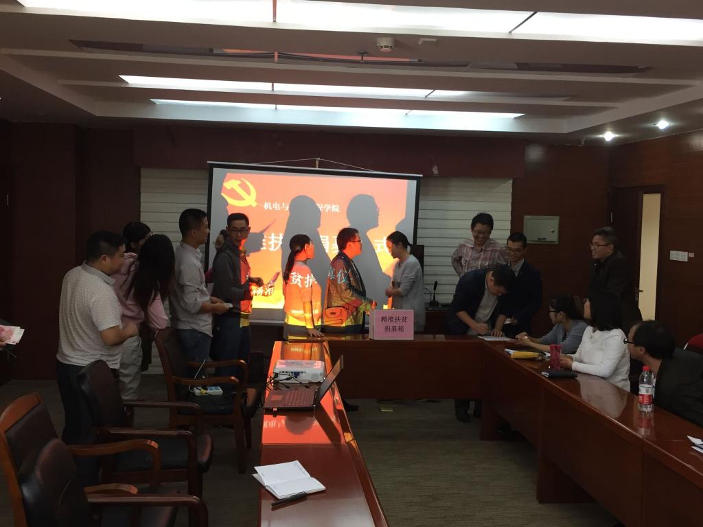 为认真贯彻落实习近平总书记脱贫攻坚的重要指示精神,深入推进教育精准扶贫工作,10月25日,机电与能源工程学院开展精准扶贫工作捐募活动,院领导带头,教职员工纷纷解囊为贫困地区献上爱心,所捐募款项主要用于我院对口帮扶村的困难学生顺利完成学业,在生活上需要帮助的孤寡老人、贫困党员等,此笔捐款将专款专用。