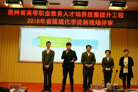 2016年10月26日,贵州省高等职业教育人才培养质量提升工程2016年省级现代学徒制试点项目现场评审在我校举行。本次进入现场答辩的现代学徒制试点项目,是由贵州省各职业院校通过校内评审推荐,经过教育厅专家组材料评审环节后公示入围的13个现代学徒制试点项目。