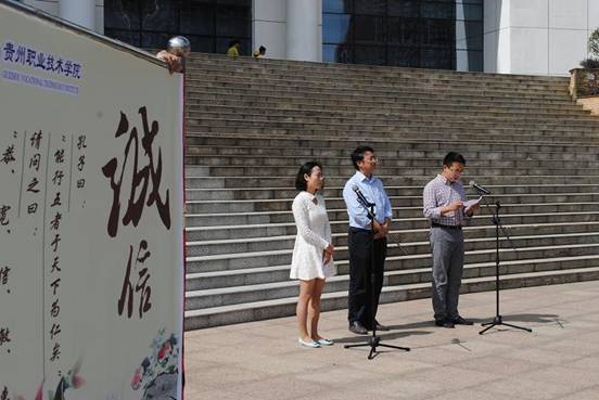 根据省教育厅相关要求,为进一步做好我校学生诚信教育工作,积极构建“以诚信为荣”的校园文化氛围,提高资助育人实效,学生资助管理中心在全校范围内开展了以“树诚信之风,建诚信校园”为主题的诚信教育系列活动。10月27日中午,诚信教育系列活动启动仪式暨诚信宣誓签名活动在校前广场拉开序幕。副校长徐伟出席本次活动,学生资助管理中心主任陈鹰、各学院教师及受资助学生代表300余人参加。活动由学生资助管理中心副主任刘婕主持。