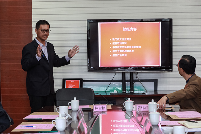 参访团团长夏瀛洲(空军退役上将,现任台湾中华民族团结协会及中华黄埔三军退将总会理事长)代表参访团一行对学校的热情接待表示感谢。省委统战部王茂爱副部长向大家简单介绍了台湾中华民族团结协会及参访团此行的目的。台湾中华民族团结协会一直努力促进两岸同胞在文化、经济、社会等方面的交流与发展。参访团此行来到贵州广播电视大学(贵州职业技术学院)希望能在航空相关专业开展合作交流,为贵州的教育、经济等方面的发展做一些努力和贡献。参访团团员周裕森少将(凯门航太科技公司董事长)、林青松(凯门航太科技公司企划长)详细介绍了航空产业营业项目以及航空产业未来的发展趋势。对我校航空专业以及实训基地的建设给予了高度肯定并对与我校的交流合作表示出浓厚的兴趣。最后,王茂爱副部长表示,希望学校与协会双方能更主动合作,深化文化和教育交流,促进两岸共同发展。