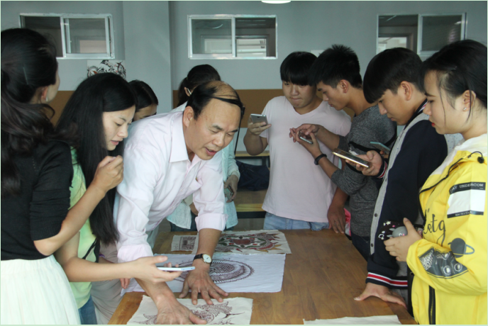 贵州蜡染艺术是我们民族文化的智慧结晶,,传承民族文化,保护非物质文化遗产,是民族手工大师工作室的工作目标,艺术与设计学院民族手工大师工作室将坚持打造以艺术大师、专家教授、民族手工传承人、专业教师为一体的教学团队,为最终提高人才培养质量而努力!