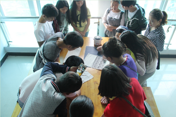 | 陈舒院长为同学们解读蜡染作品 |