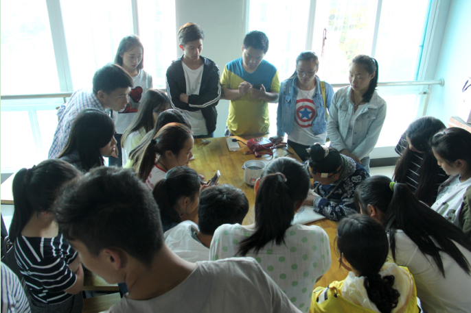 | 艺术与设计学院老师潘珺向大家介绍蜡刀的种类 |