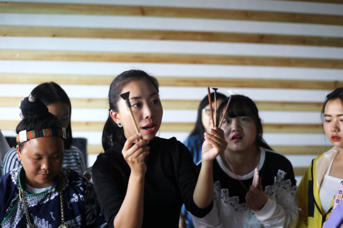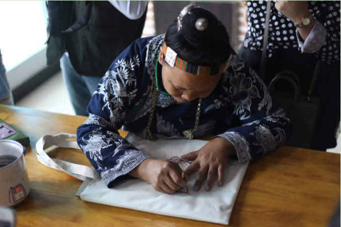 10月30日,艺术与设计学院在民族手工大师工作室举行非物质文化遗产——蜡染艺术培训会,丹寨百里苗族的杨二耶牛和开阳小花苗的侯俊英两位非物质文化遗产传承人来到我院,传授蜡染工艺技法并与现场的老师和同学们互动交流。