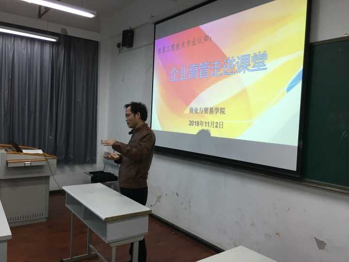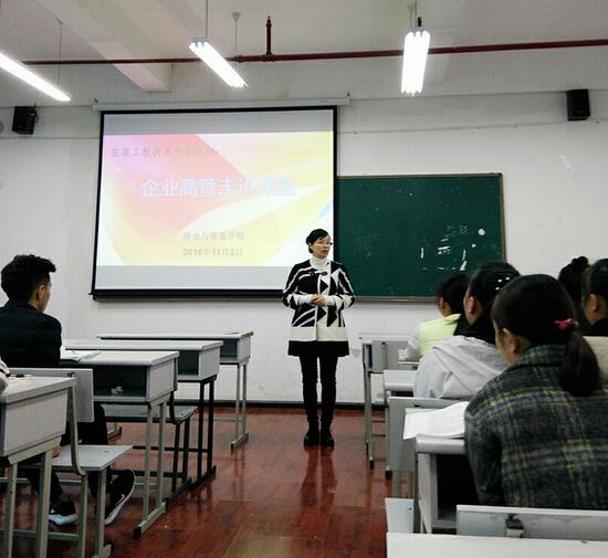 2016年11月2日下午,商贸学院举行了包装工程技术专业认知讲座,邀请高管走进课堂,帮助学生认知专业。此次讲座邀请了贵州万杰千策文化发展有限公司总经理万兴贵为同学们介绍贵州包装行业的发展现状及未来包装市场的变化。商贸学院副院长袁德臻、包装工程技术专业教研室主任刘源、专业教师张珈源和辅导员杨欢参加了此次讲座。