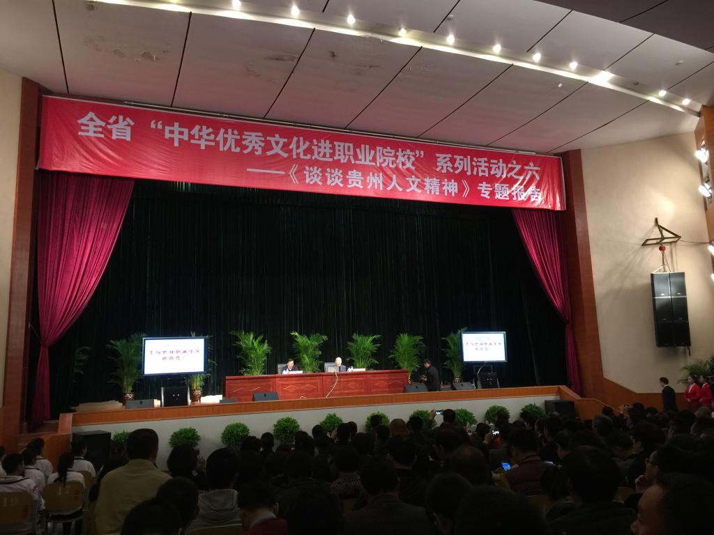 据悉,本次报告会是由省教育厅组织,是全省中华优秀文化进职业院校系列活动之一,来自全省中高职院校、教育局领导、老师共1000余人参加。通过聆听此次专题报告会,不仅有利于传承和弘扬贵州省人文精神更,更有利于加快推进高职院校职业文化与人文精神的融合发展,培养有良知、有善行的高级技能型人才。