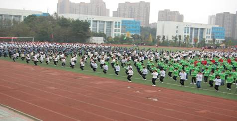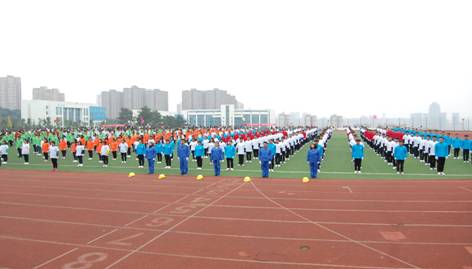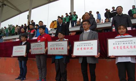 为了贯彻落实教育部关于《国家中长期教育改革和发展规划纲要(2010-2020年)》、《国务院办公厅转发教育部等部门关于进一步加强学校体育工作若干意见的通知》精神,切实推进我校体育教学工作,丰富校园课外体育活动,鼓励学生积极参加体育锻炼,激励全校学生养成运动健身的良好习惯,以健康、奋进的姿态迎接美好的明天。2016年11月25日(星期五)下午14点30分,2016年贵州职业技术学院第九套广播操比赛在学校田径场顺利举行。比赛开幕式由基础部主任陈国敏主持,党委副书记郭万才致开幕词,副校长徐伟宣布比赛开始。党委书记邓惠宾以及相关职能部门、二级学院、中职校领导参加了开幕式并观看了比赛。