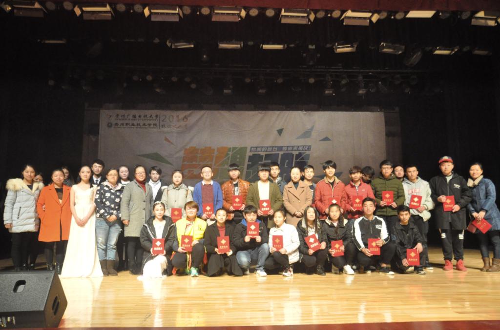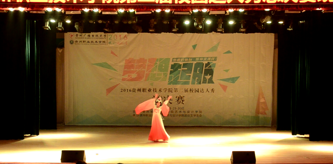 进一步丰富广大同学的精神生活,努力营造积极格调高雅、健康文明的校园文化氛围,由贵州职业技术学院团委主办,艺术与设计学院承办的第二届校园达人秀总决赛于2016年11月30日拉开序幕。担任此次活动的评委有校团委副书记李雪芬、商贸学院团总支书记汪浩萌、建工学院团总支书记邓福啦、经管学院团总支书记周秀芬、辅导员金廷芳。同时来自各个学院的老师和同学们也积极参加了此次活动。