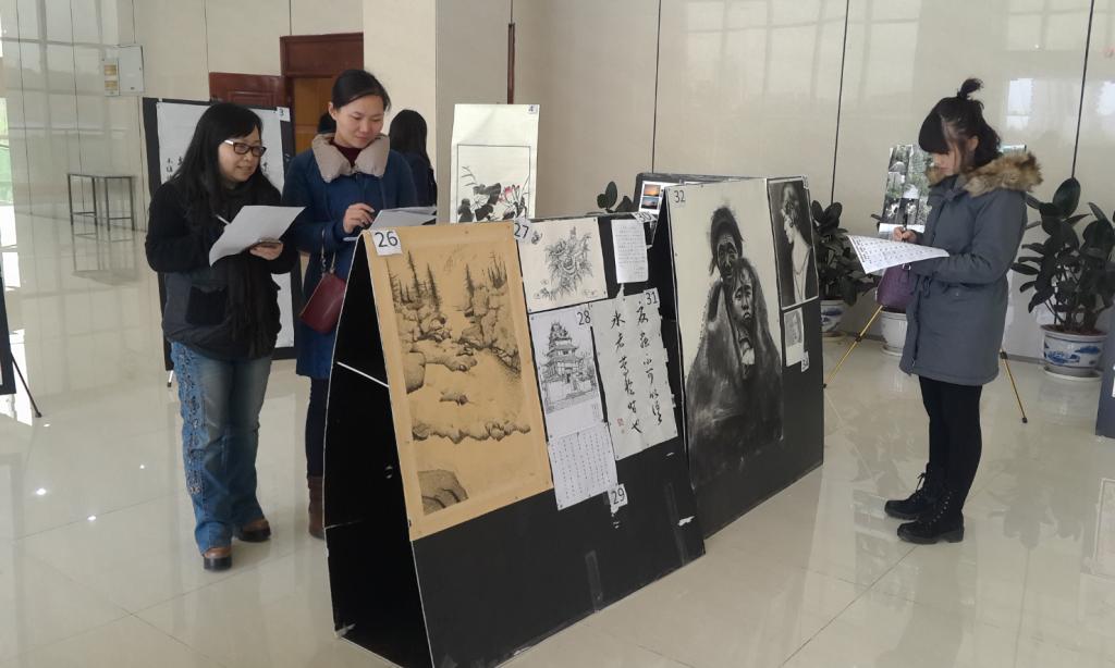 为了提高贵州职业技术学院学生自身的审美情趣和艺术修养,丰富校园文化生活,发展学生的特长,艺术与设计学院承办学生艺术作品展于2016年11月30日晚在学校礼堂顺利开展。根据同学们提交作品的类型,我们分为书法组、摄影组、绘画组(色彩)和绘画组(钢笔、素描)等四组展开评比。