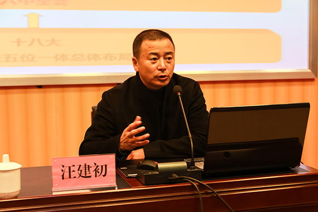 汪建初副校长在辅导报告中从充分认识党的十八届六中全会的重要意义、协调推进“四个全面”战略布局,中国共产党的九个精神基因链等方面,重点阐述了六中全会的精神。他指出,十八届六中全会是党的发展历程中坚持从严管党治党的新里程碑,是以习近平同志为核心的党中央不断完善和协调推进“四个全面”战略布局、深化全面从严治党的重要举措。全会明确习近平为党中央的核心、全党的核心,是历史选择和人民的期盼。《准则》、《条例》为党员干部提供了根本遵循。