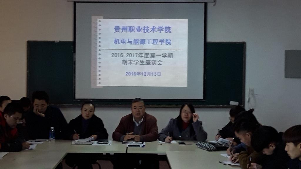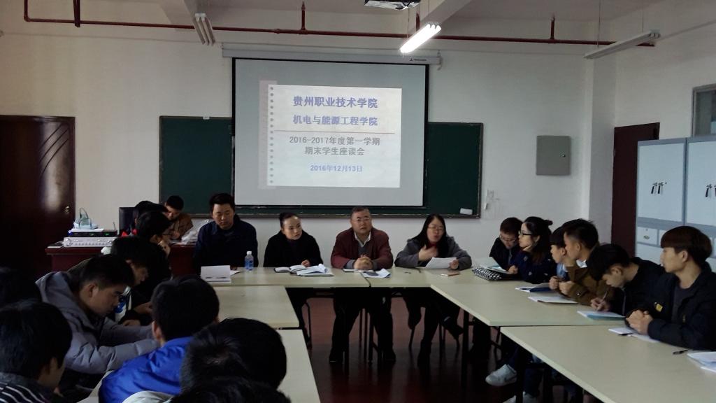 2016年12月13日,机电与能源工程学院在慎行楼610教室召开期末师生座谈会,会议由李政敏副院长主持,2015级、2016级各班学生代表参加,院长韩跃武、党总支书记卿云以及教研室相关人员出席了本次会议。