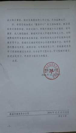 按照州教育局的相关批复文件精神,黔南电大将履行职责,充分发挥职能作用,为全面推进黔南州社区教育的健康发展,建设黔南州学习型社会,构建黔南州终身教育体系作出积极的贡献。