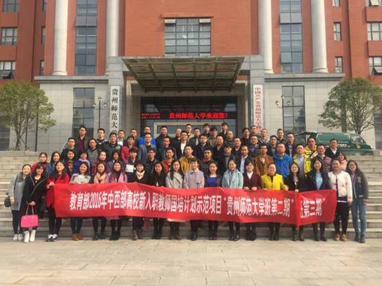2016年11月29日—12月18日,为期二十天的教育部2016年中西部高校新入职教师国培计划项目在贵州师范大学宝山校区举行,来自省内高校的国培第二期、第三期学员齐聚一堂,聆听大师专家学者们的传道授业解惑,培训分成几个板块:一是宏观理论学习,包括高校教师职业道德、信息化时代下的青年教师专业发展、厚德载物——科学精神与人文精神、高校内涵建设的理论与实践等;二是实践性操练,包括素质拓展训练、教学办公软件综合应用、教学技能综合训练、教学技能综合展示等;三是考察参观学习,包括泰豪e时代、贵安双创园基地;四是红色文化和爱国主义教育学习,参观息烽集中营、遵义会议会址、遵义红军山烈士墓。