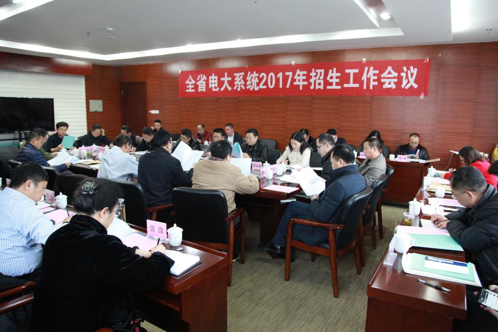 2016年12月20日下午,全省电大2017年招生工作会在省电大金阳校区六楼会议室圆满举行。学校党委书记邓惠宾、校长李皖、副书记郭万才、副校长龚辉、钱庆生、徐伟出席会议。全省九个市(州)分校、行业分校的领导及办公室主任、省校开放教育学院、继续教育学院和相关处室的主要负责人参加会议。会议由副校长徐伟主持。