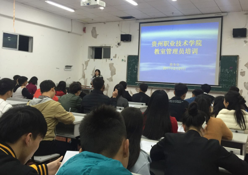 2017年2月21日晚上19时,贵州职业技术学院教室管理员培训会在敏行楼802召开。本次培训会由教务处组织,22名辅导员老师和143名教室管理员参加了培训会。