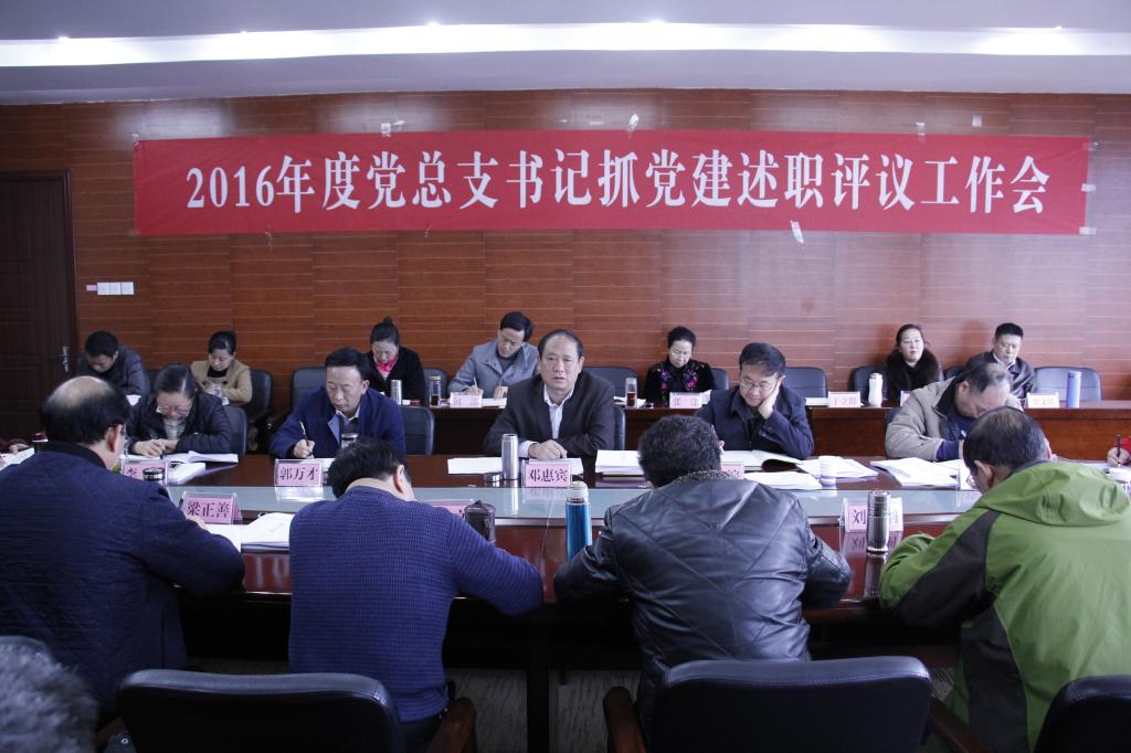 3月2日,我校在云潭南路校区召开了2016年度党总支书记抓基层党建工作述职评议会议。校党委书记邓惠宾同志主持会议并讲话。在家校领导李皖、郭万才、李勤、徐扬同志出席会议,党群部门负责人,各党总支书记和副书记,党支部书记代表,“两代表一委员”代表参会。
