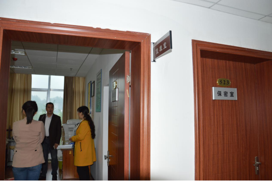 上午10点30分,调研组在教务处相关人员的陪同下,参观了我校云潭南路校区保密室、值班室,并对试卷出入库登记、值班记录、监控、试卷柜等进行检查,在对我校学位英语考试工作予以肯定的同时,也对我校学位英语考试保密工作提出了具有指导性的建议。