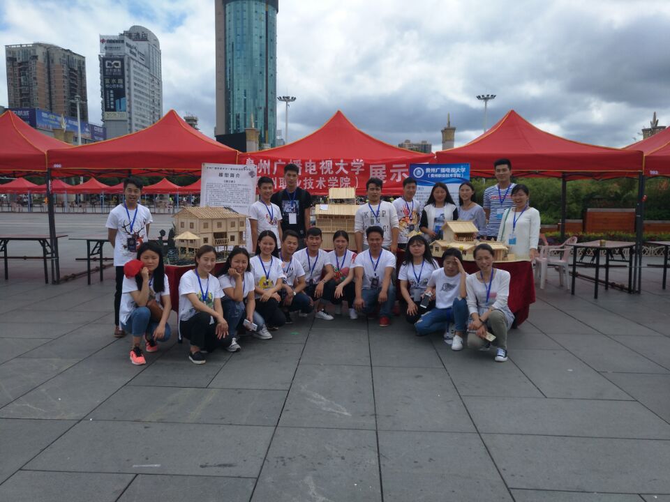 科技强国,创新圆梦。5月20日上午,2017年贵州省科技活动周启动仪式暨大型科普宣传活动在贵阳市筑城广场盛大开幕了,贵州职业技术学院建筑工程学院代表学校参加了此次活动,代表队由建工学院团总支书记邓福啦带队,作品指导是蒋晓华及胡蓉两位老师,以及部分建筑室内设计专业的同学。