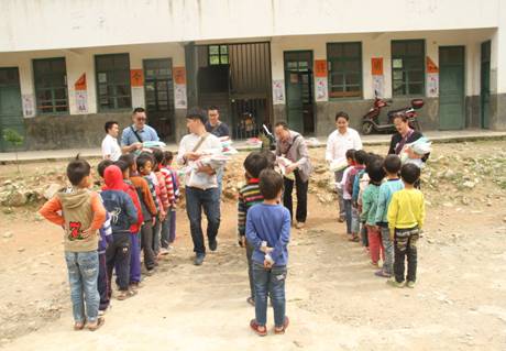第三,为打秀村贫困初中生和小学生送书包。为了鼓励打秀村中小学生努力学习,天天向上,扶贫小组为打秀村24名贫困中小学生送去了书包,殷明俊书记致词鼓励,并寄予了厚望。