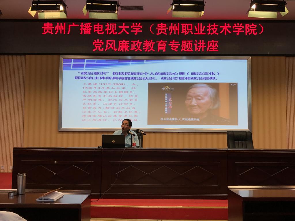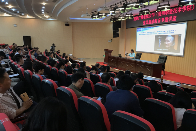 为更好地贯彻落实党的十八届六中全会精神,加强党风廉政建设和反腐败工作,根据2017年学校党风廉政宣传教育安排,6月5日下午,我校邀请贵州省委党校郝建教授在图书馆多媒体报告厅作题为《强化“四个意识”全面从严治党--学习贯彻十八届六中全会精神》的专题讲座。校领导邓惠宾、李皖、郭万才、钱庆生、李勤到场听取讲座。讲座由学校纪委副书记、监察室主任李光和同志主持。
