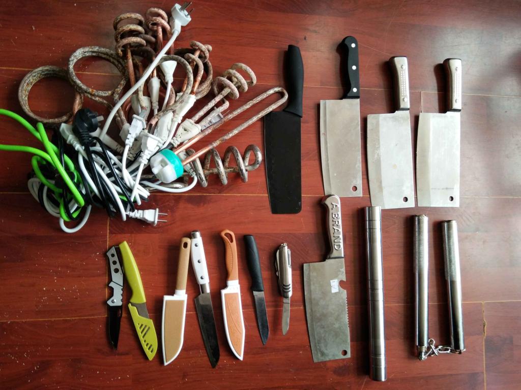 通过全体人员的认真努力工作和通力合作,此次安全隐患大排查大整治工作,共收缴大功率电器13件、刀具12把、铁棍1棵、钢管式双截棍1棵,检查人员在收缴违禁物品的同时也对违规违纪学生进行了批评教育。